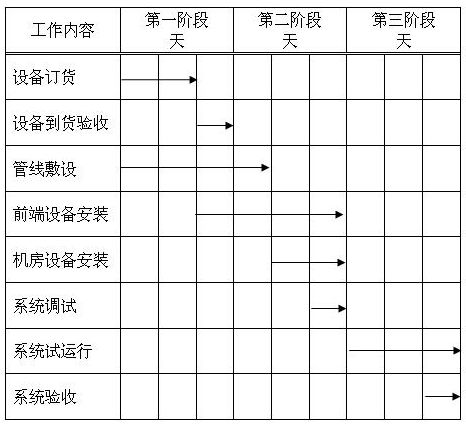一、工程施工進(jìn)度表(從設(shè)備訂貨到系統(tǒng)驗(yàn)收共用55個(gè)工作日)