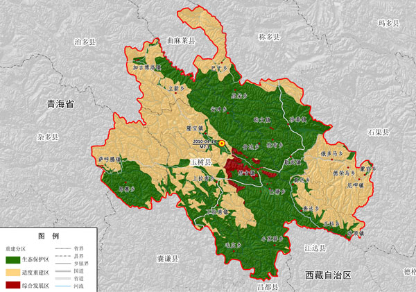 根據青海玉樹地震災害評估報告,玉樹地震波及范圍劃分為極重災區(qū)、重災區(qū)、一般災區(qū)和災害影響區(qū)。本規(guī)劃范圍包括極重災區(qū)、重災區(qū)的各項恢復重建內容,以及一般災區(qū)中受損居民住房和學校、醫(yī)院等公用設施,涉及青海省玉樹藏族自治州玉樹、稱多、治多、雜多、囊謙、曲麻萊縣和四川省甘孜藏族自治州石渠縣等7個縣的27個鄉(xiāng)鎮(zhèn),受災面積35862平方公里,受災人口246842人。