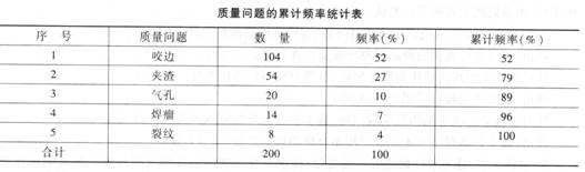 1.根據(jù)表3-1,采用排列圖法列表計(jì)算質(zhì)量問(wèn)題累計(jì)頻率,并分別指出哪些是主要質(zhì)量問(wèn)題、次要質(zhì)量問(wèn)題和一般質(zhì)量問(wèn)題。