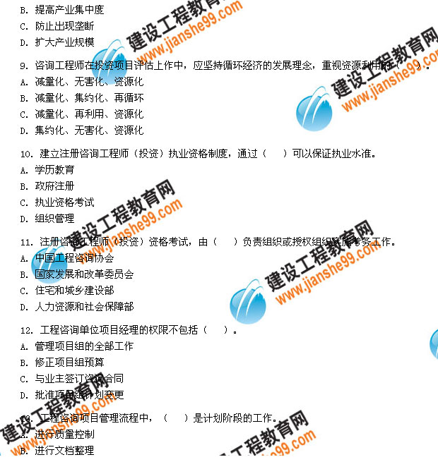 2009年咨詢工程師考試《工程咨詢概論》試題及答案