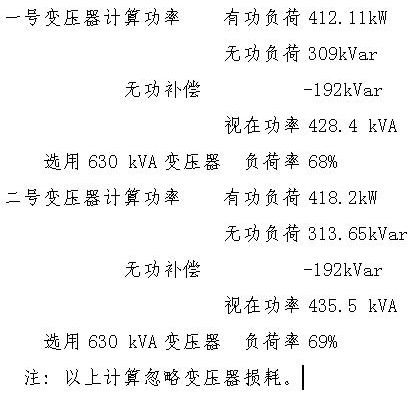 根據(jù)以上的思想及負荷的初步統(tǒng)計結(jié)果,按兩臺變壓器進行負荷計算,一臺變壓器(一號變壓器)負責(zé)一號鍋爐及公共部分的供電,另一臺變壓器(二號變壓器)負責(zé)二號、三號鍋爐的供電。無功補償采用自動補償屏。