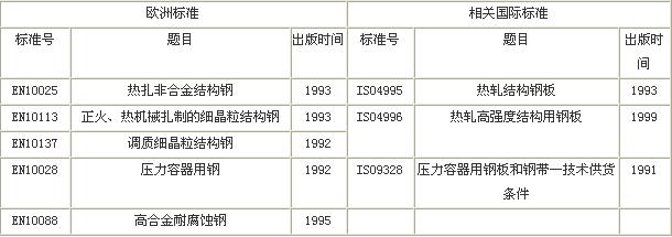 在化學成份和機械性能方面的規(guī)定基本一致,只是歐洲標準劃分更細一點,例如在強度用鋼的標準中,歐洲標準列出了材料在不同供貨厚度下的屈服強度和抗拉強度的最低值,而國際標準只給出一個范圍。