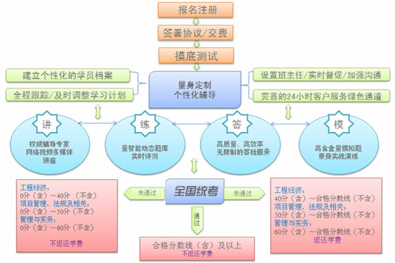 “實(shí)驗(yàn)班”學(xué)員通過系統(tǒng)和完整地學(xué)習(xí)輔導(dǎo)課程后,網(wǎng)校承諾學(xué)員在2011年一級(jí)建造師考試中的成績達(dá)不到該科目合格分?jǐn)?shù)線時(shí),我們將按照協(xié)議返還學(xué)費(fèi)。選報(bào)實(shí)驗(yàn)班的學(xué)員在正式開始實(shí)驗(yàn)班學(xué)習(xí)之前,需通過郵寄書面合同方式簽署協(xié)議。此方案如與協(xié)議有所出入,請以協(xié)議為準(zhǔn)。