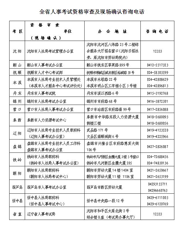 (三)報(bào)名時(shí),我省報(bào)考人員(不含大連考生)請選擇“遼寧省”考區(qū)。駐沈的中、省直單位報(bào)考人員應(yīng)選擇“省直”審核點(diǎn),其他報(bào)考人員均按屬地化管理原則,選擇單位所在市或綏中縣為報(bào)名資格審核點(diǎn)。報(bào)名有關(guān)事宜咨詢電話詳見附件。