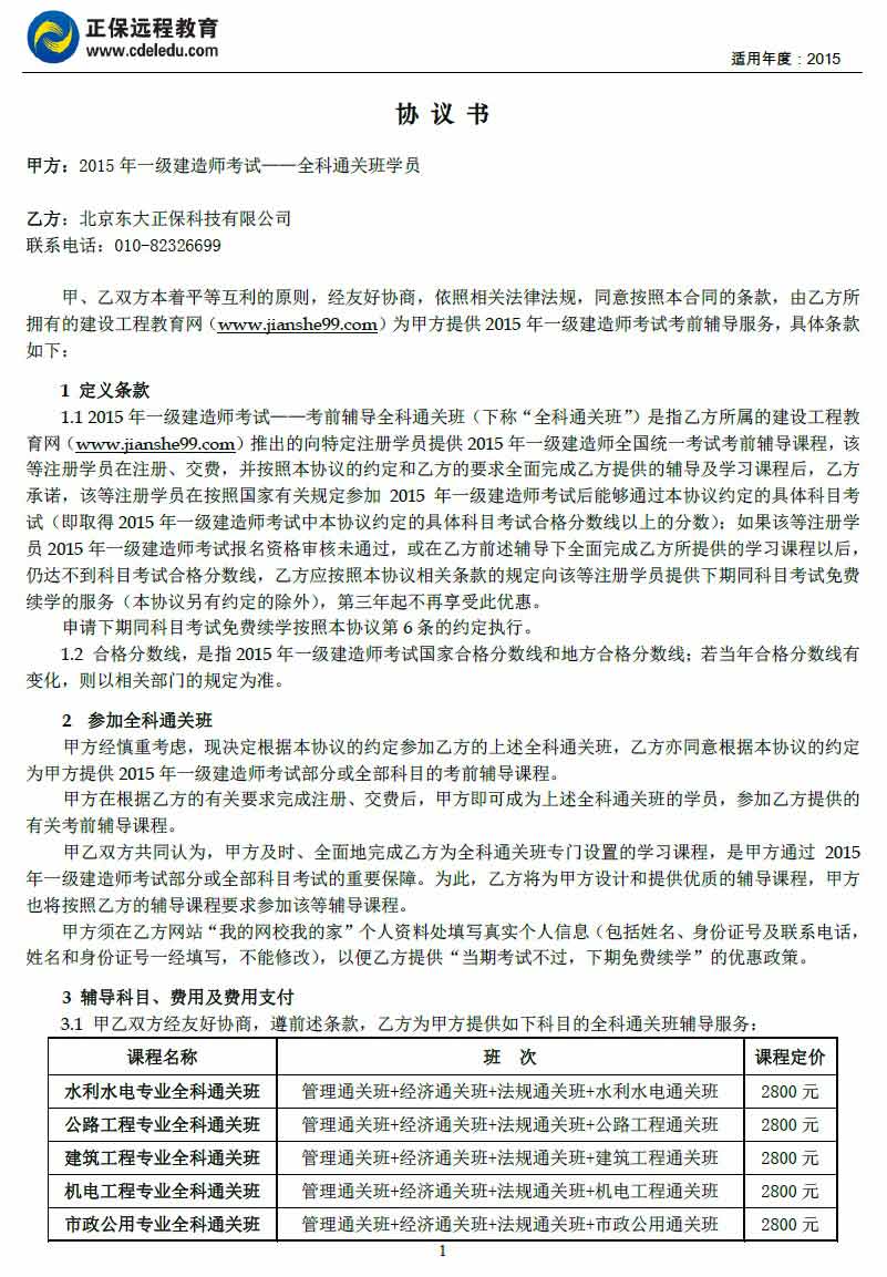 一級(jí)建造師“全科通關(guān)班”協(xié)議書(shū)