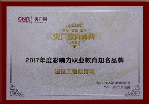 建設(shè)工程教育網(wǎng)榮獲“2017年度影響力職業(yè)教育知名品牌”稱號