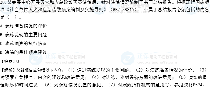 2021年一級消防工程師《消防技術(shù)綜合能力》試題答案及解析1-20