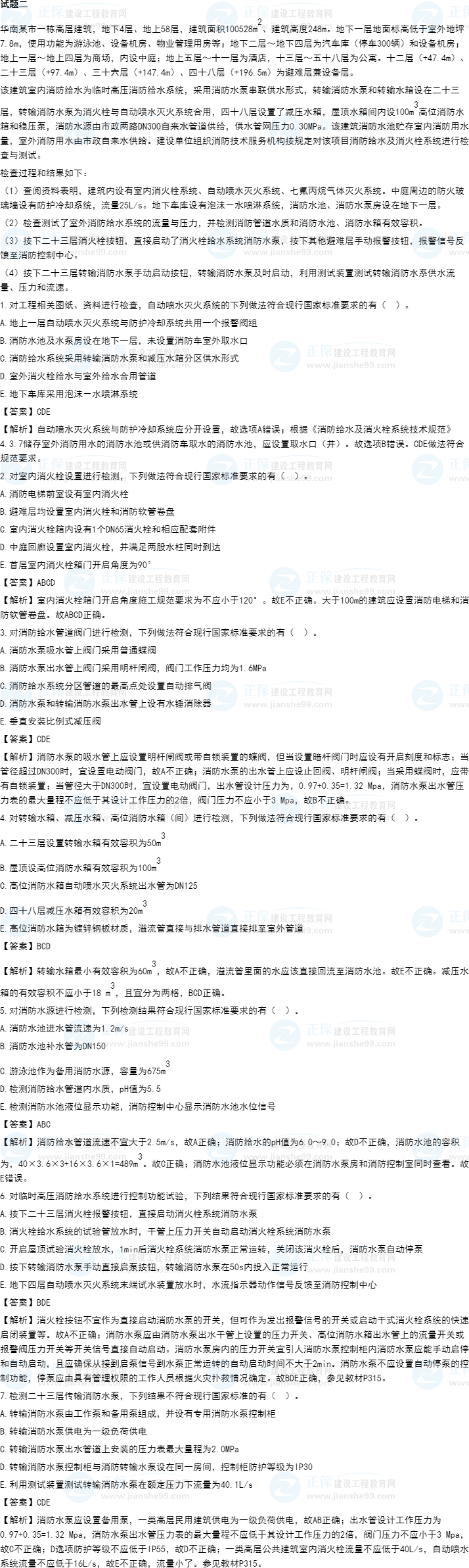 2021年一級消防工程師《消防安全案例分析》試題答案及解析