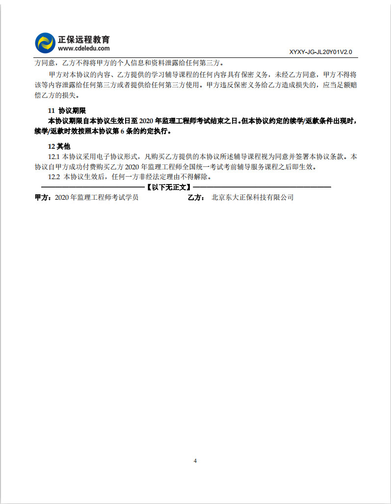 2020年監(jiān)理工程師協(xié)議書(shū)