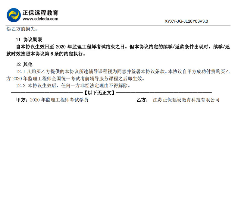 2020年監(jiān)理工程師協(xié)議書