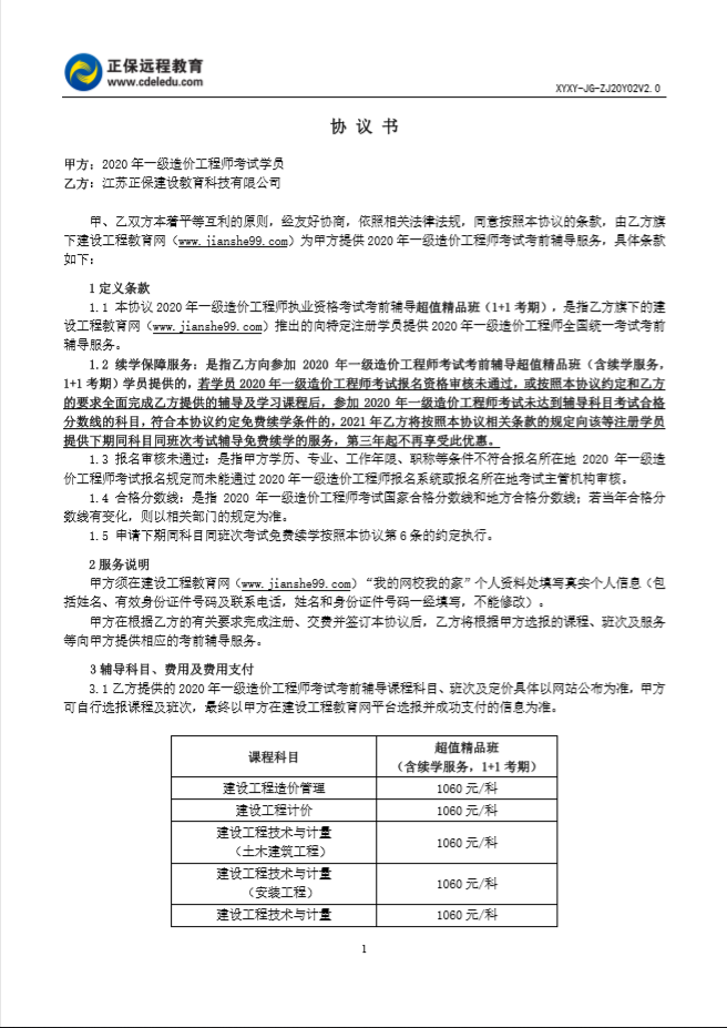 一級(jí)造價(jià)工程師協(xié)議書(shū)