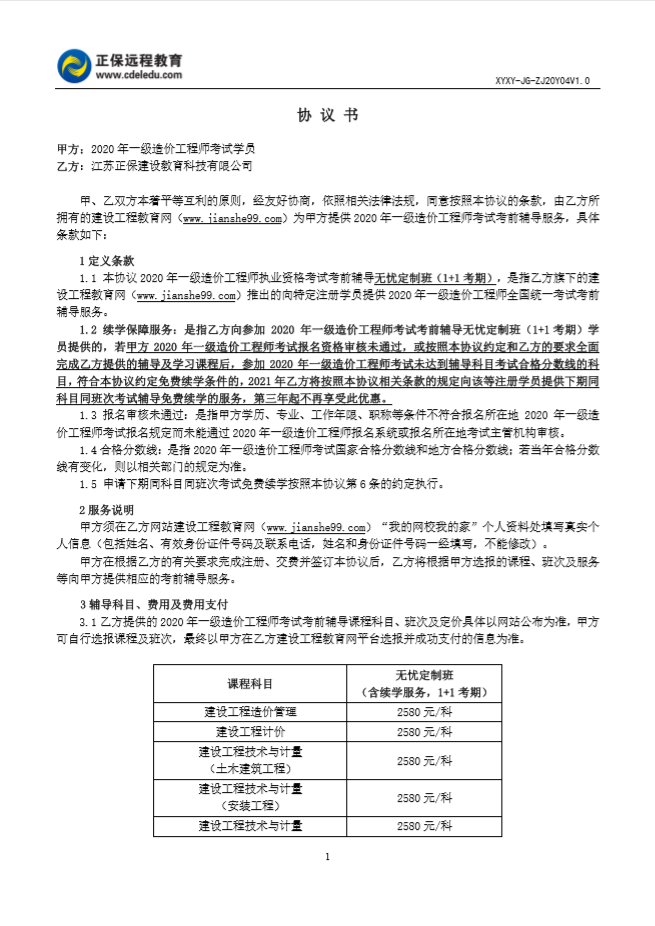 一級(jí)造價(jià)工程師協(xié)議書(shū)