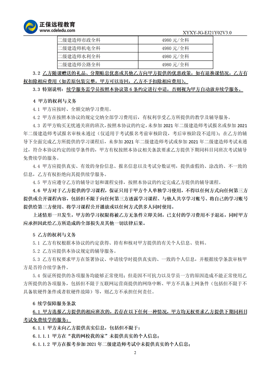 2021年二級(jí)建造師無(wú)憂通關(guān)班協(xié)議書