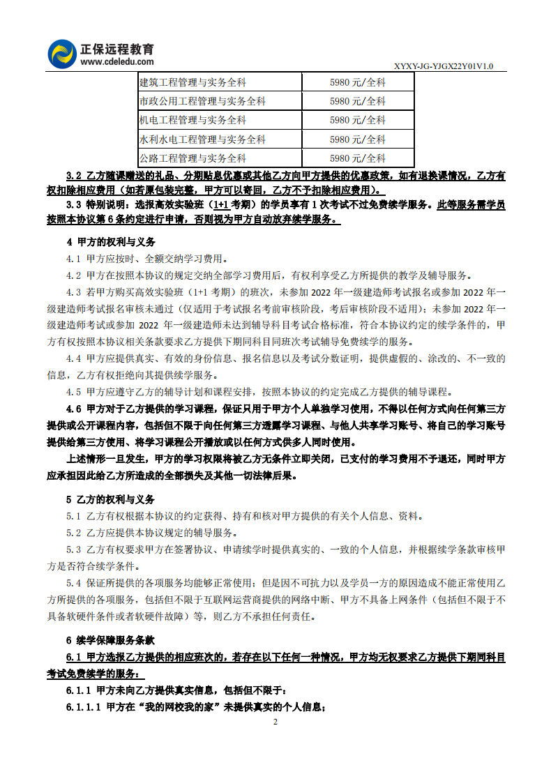 2022年一級建造師高效實驗班續(xù)學(xué)協(xié)議書