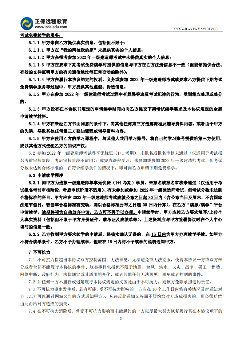 2022年一級建造師尊享無憂班續(xù)學(xué)協(xié)議書