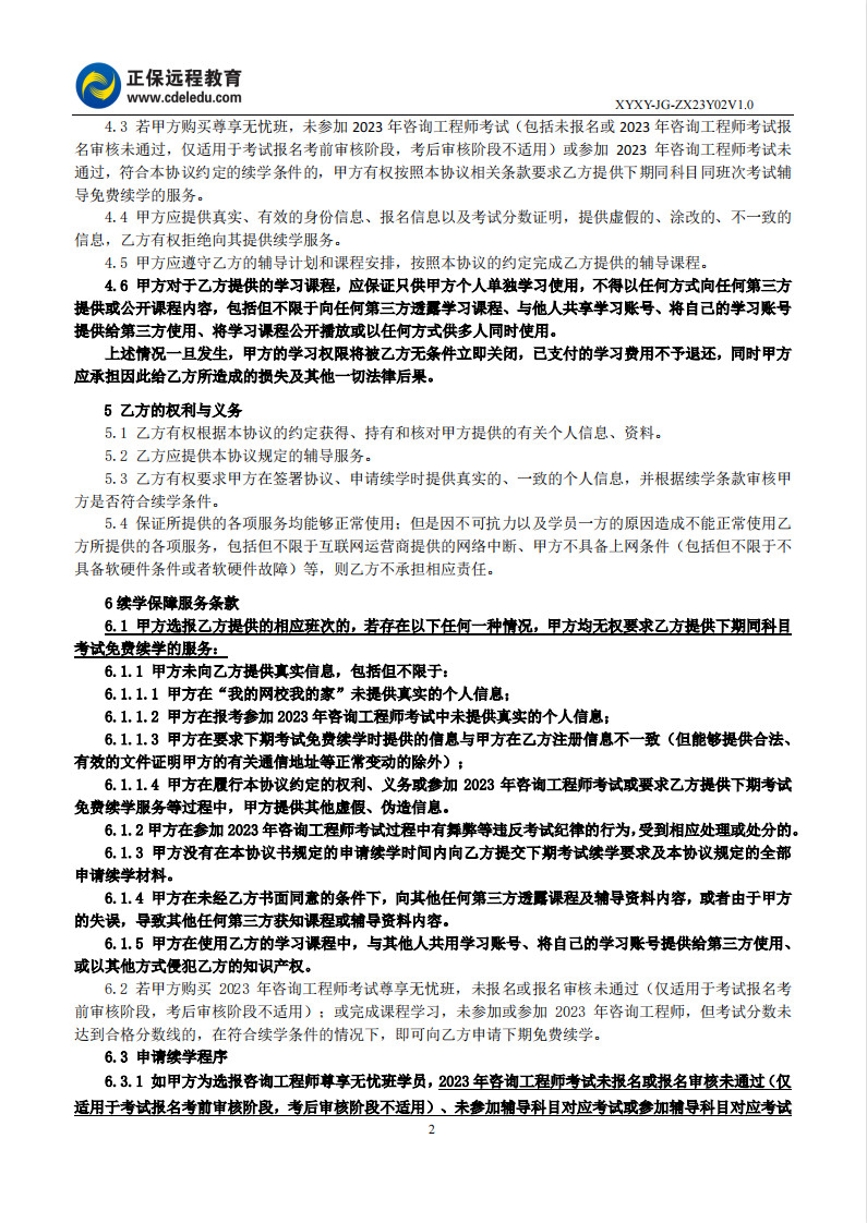 咨詢工程師尊享無(wú)憂班協(xié)議書(shū)