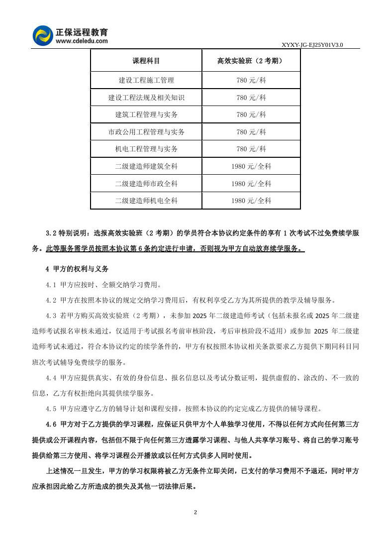 2025年二級建造師高效實驗班(2考期)協(xié)議書