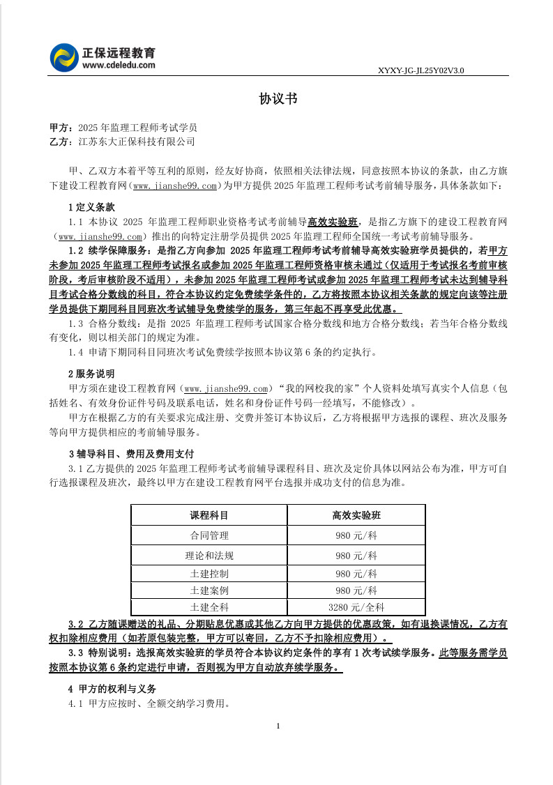 2025年監(jiān)理工程師協(xié)議書