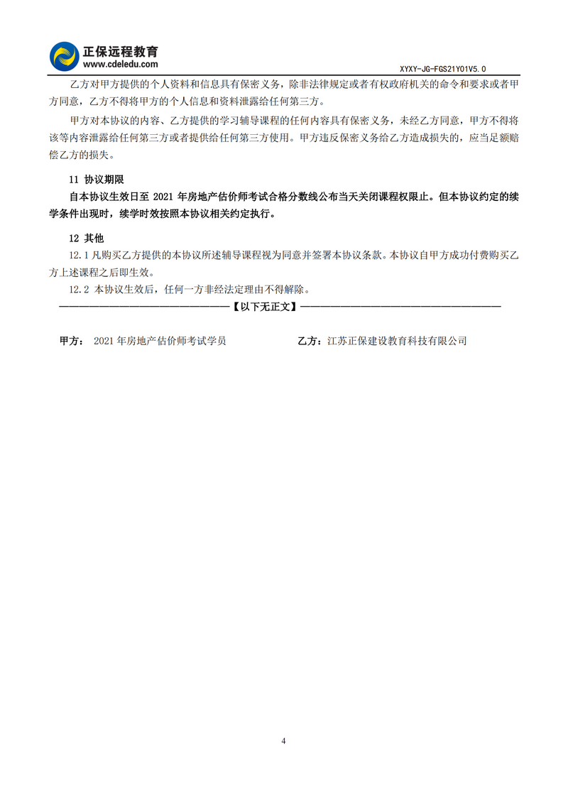 2021年房地產(chǎn)估價(jià)師高效實(shí)驗(yàn)班協(xié)議書(shū)