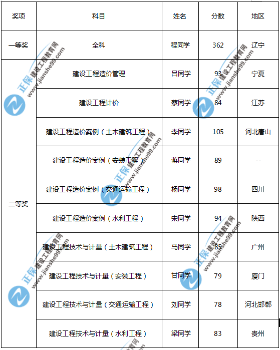 2019年一級造價師報分有獎學(xué)員名單出爐