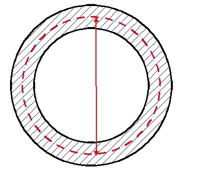 斜線是橋墩壁厚,中間的圓是空的,所以叫空心橋墩,紅線是壁厚的中心線,箭頭之間的距離是中面直徑。