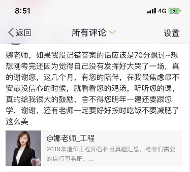 看到學(xué)員們都在工程計價上取得了不錯的成績,網(wǎng)校的老師和小編們也是非常開心!2020年我們將繼續(xù)提供更加優(yōu)質(zhì)的課程和服務(wù),愿一級造價工程師考試對于我們的學(xué)員們來說,永遠(yuǎn)不難!2020年的工程計價學(xué)員們,跟著我們的美娜老師,沖鴨!
