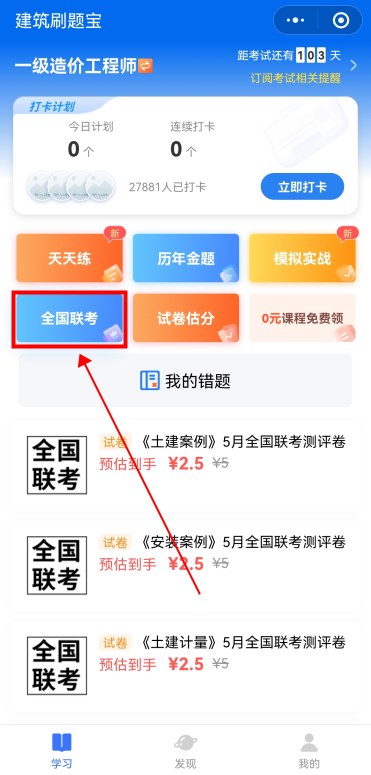 點擊“全國聯(lián)考”進入考試入口。