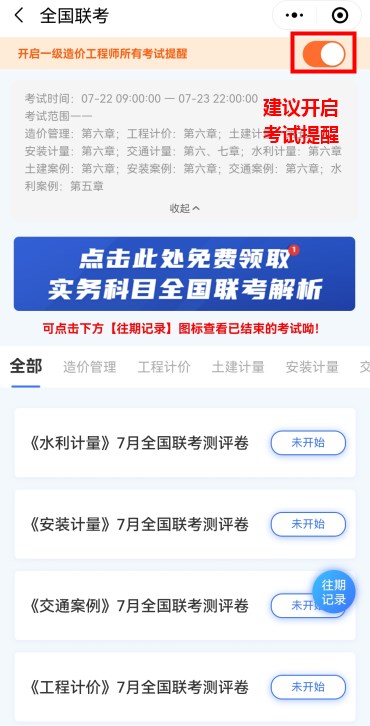 建議開通考試提醒,避免錯過一級造價工程師考試。