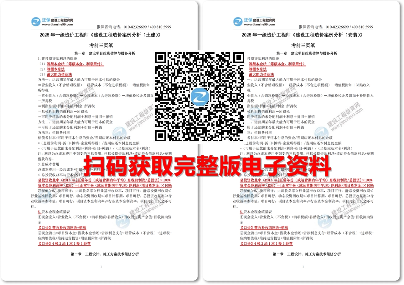建設工程造價案例分析(土建、安裝)》考前三頁紙