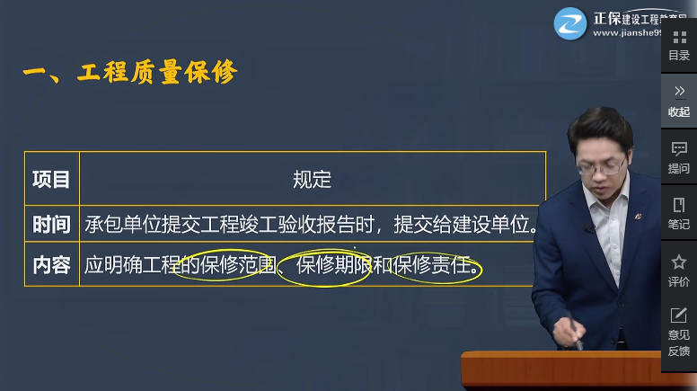 4.工程承包單位向建設(shè)單位出具的質(zhì)量保修書中,應(yīng)明確的內(nèi)容是()。