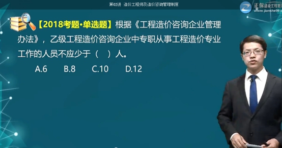 【試題3】乙級造價企業(yè)中專職從事工程造價專業(yè)工作人員應不少于(?。┤恕?/span>