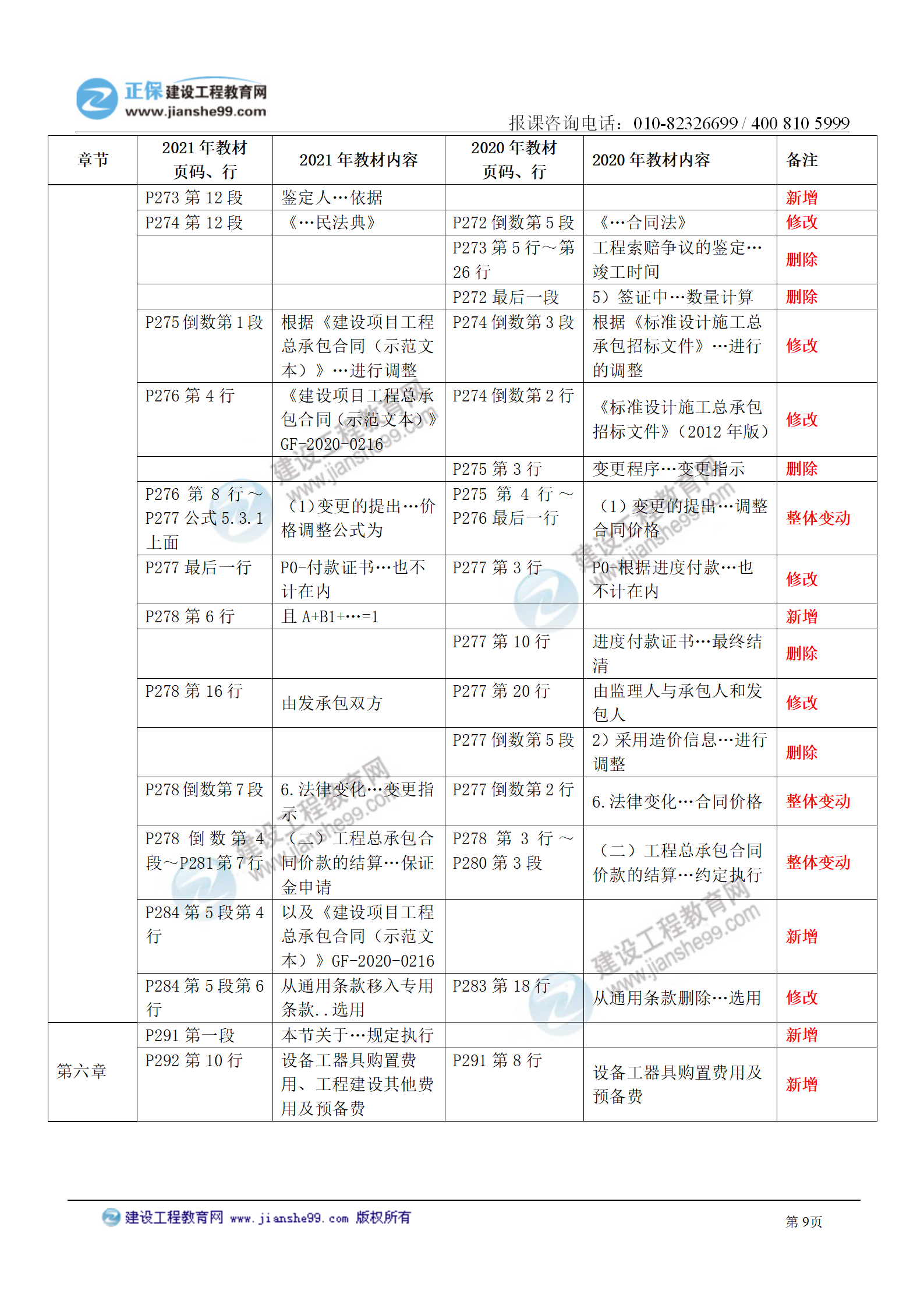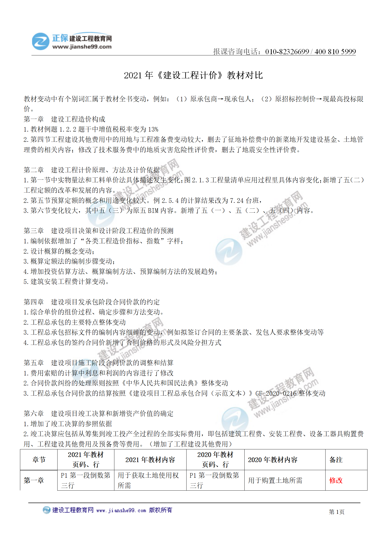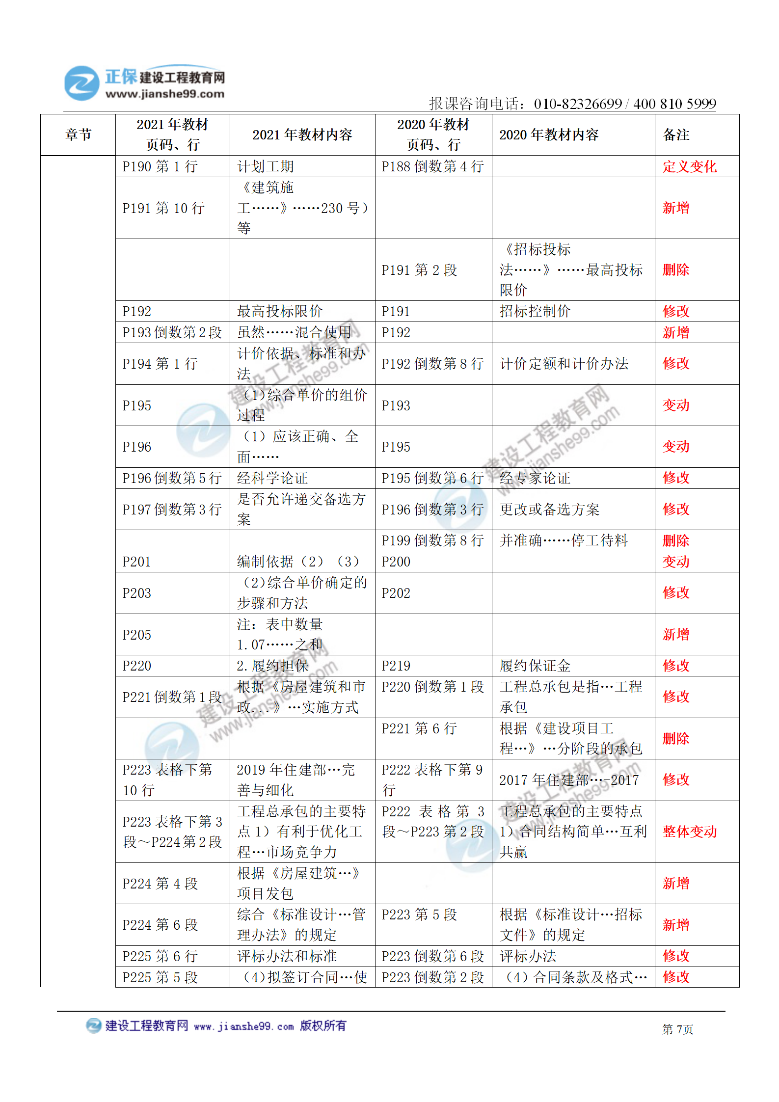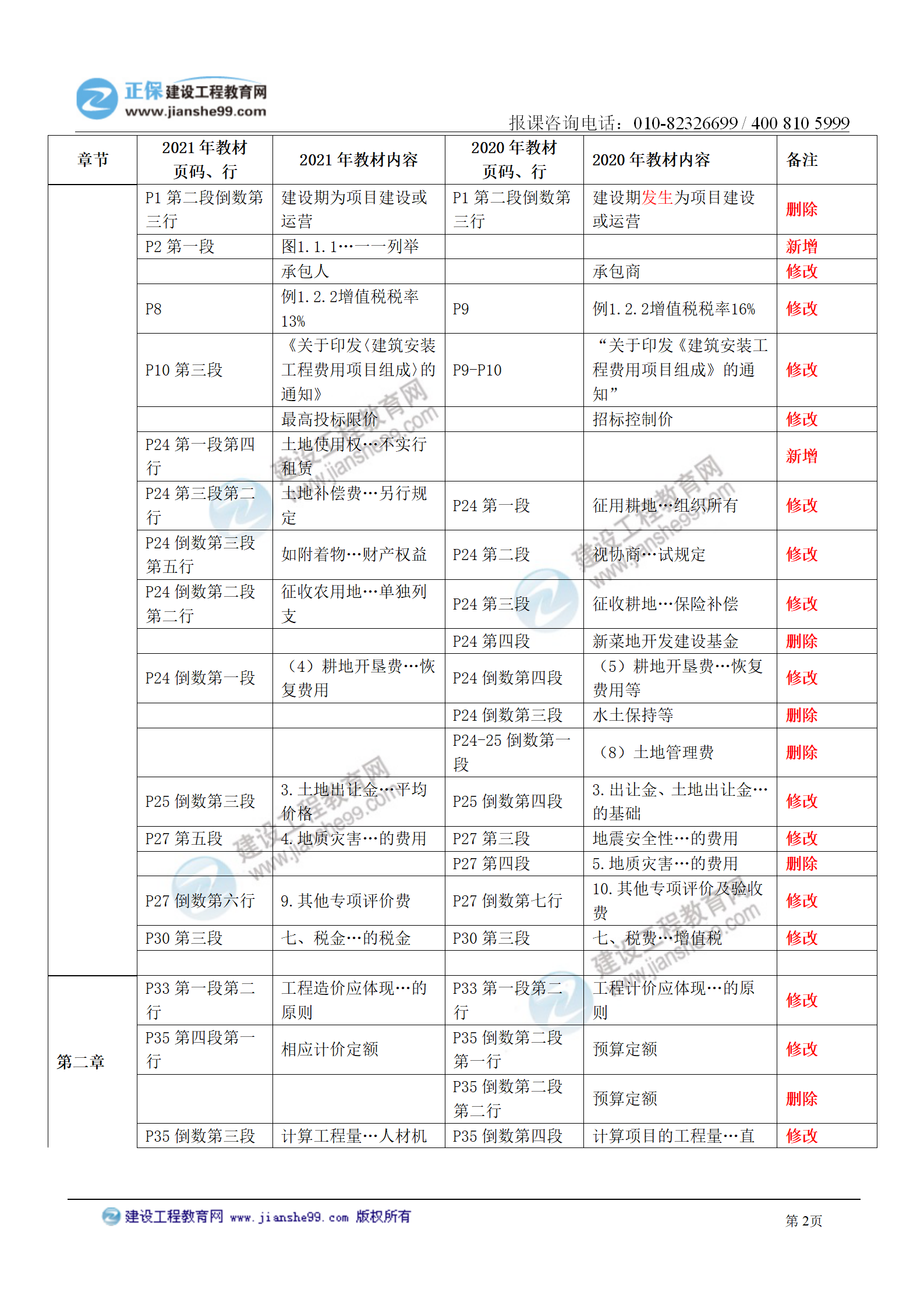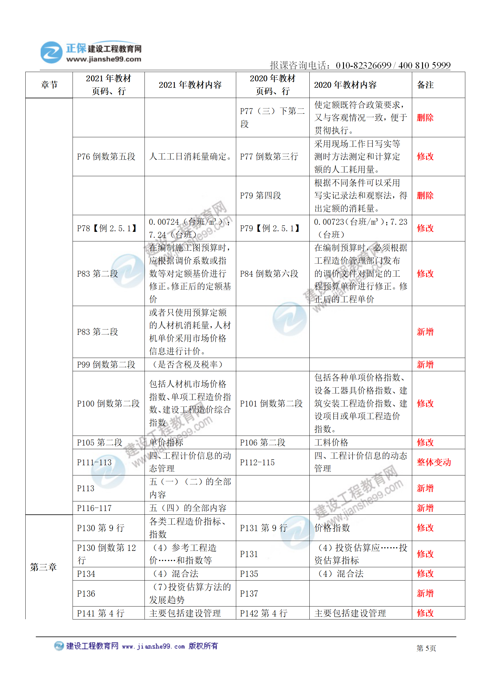 2021年一級造價師《建設工程計價》教材變化對比