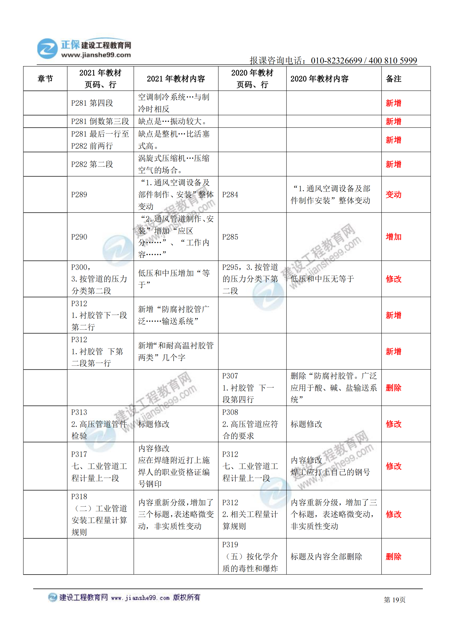 2021年一級(jí)造價(jià)師《建設(shè)工程技術(shù)與計(jì)量(安裝)》教材變化對(duì)比