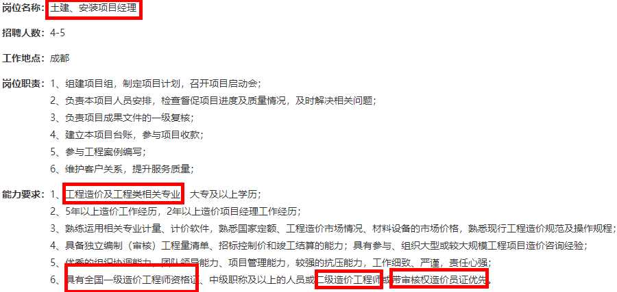 企業(yè)招聘一級造價師,下一個項(xiàng)目經(jīng)理是你嗎?