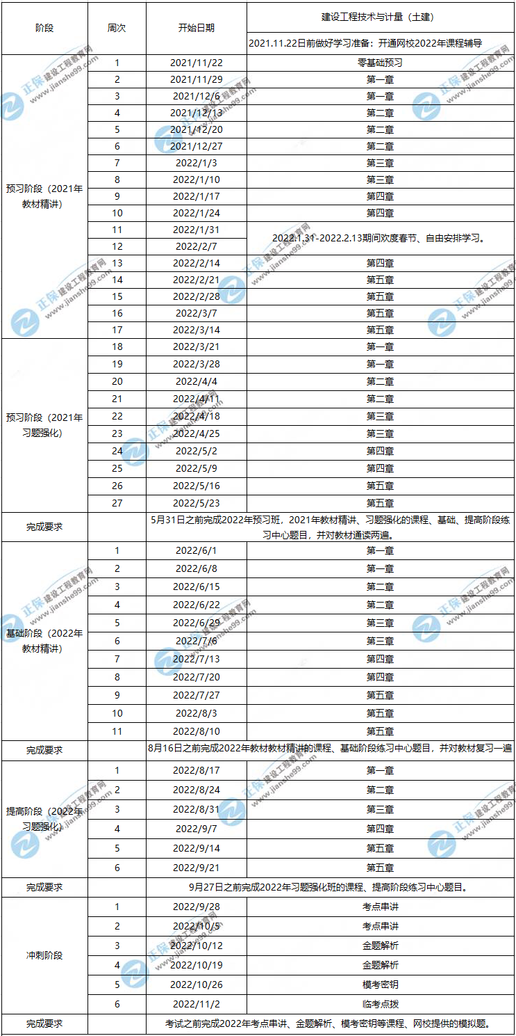 2022一級(jí)造價(jià)工程師土建計(jì)量學(xué)習(xí)計(jì)劃表!