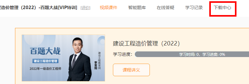 2、點(diǎn)擊進(jìn)入課程,點(diǎn)擊下載中心;