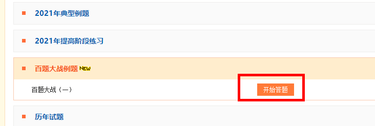 2、選擇百題大戰(zhàn)例題,點(diǎn)擊開始答題,即可進(jìn)入練習(xí)。