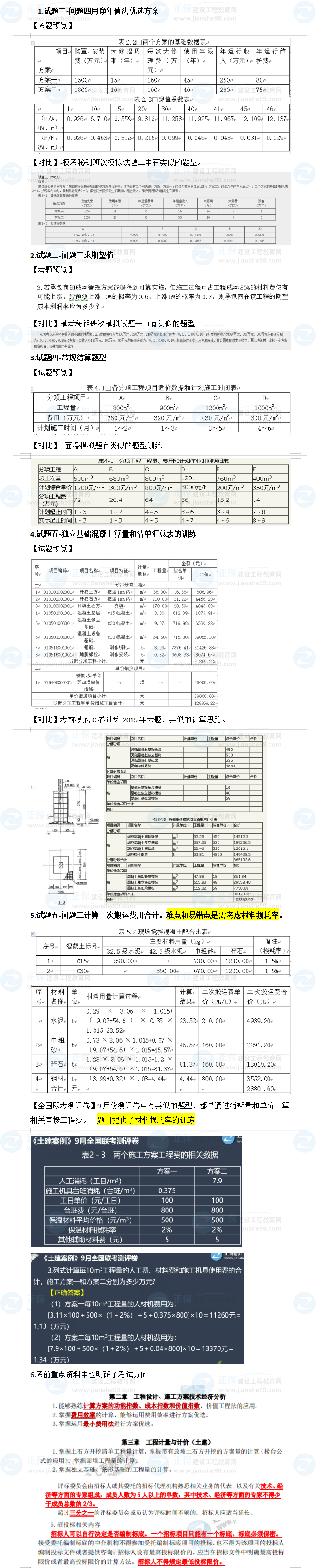試題二考點比較常規(guī),特別之處是,題目中給出了建設(shè)期1年,求凈年值與我們往常訓(xùn)練的折現(xiàn)期是不同的。本次考試是按照全壽命周期去計算的年值。