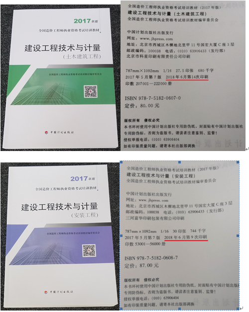 2018年造價工程師教材已新鮮出爐,其版本仍是沿用的2017版教材,其中計劃出版社出版的《建設(shè)工程造價管理》、《建設(shè)工程計價》、《建設(shè)工程技術(shù)與計量(土建)》和《建設(shè)工程技術(shù)與計量(安裝)》這4本教材沒有任何變動,城市出版社出版的《建設(shè)工程造價案例分析》已按照去年公布的教材勘誤表進行調(diào)整,其余地方?jīng)]有變動。
