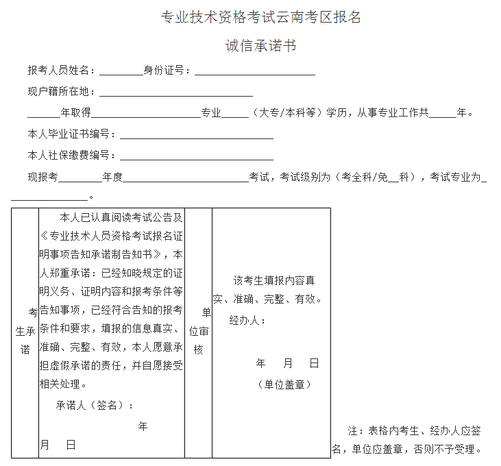 附件:專業(yè)技術(shù)資格考試云南考區(qū)報(bào)名誠(chéng)信承諾書(shū)