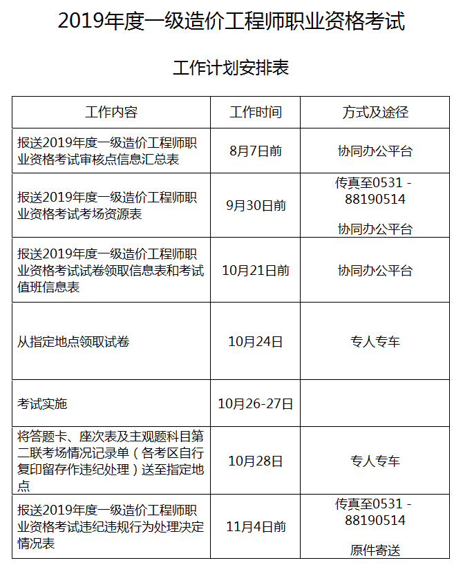 附件:1.2019年度一級造價(jià)工程師職業(yè)資格考試工作計(jì)劃安排表