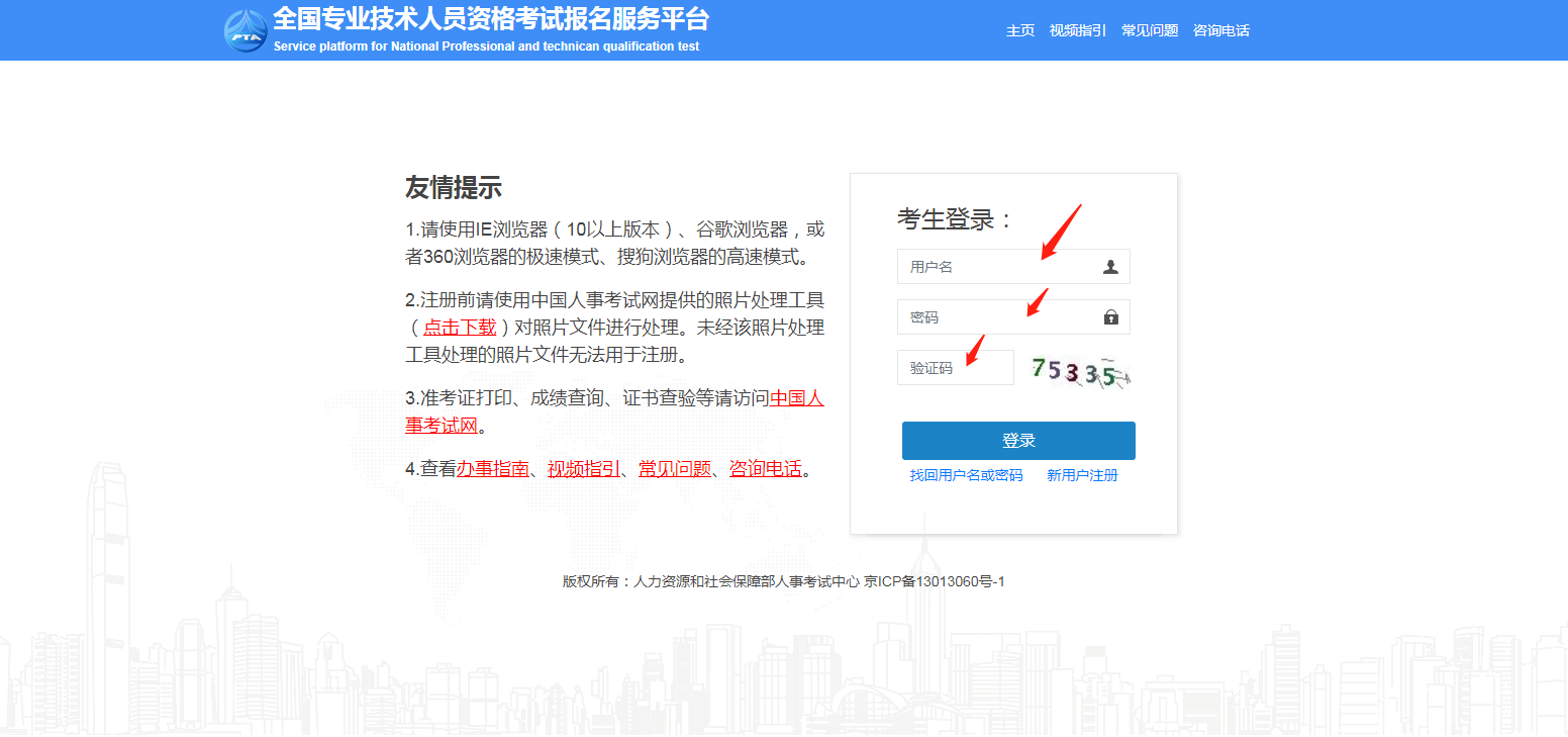 2.登錄全國(guó)專業(yè)技術(shù)人員資格考試報(bào)名服務(wù)平臺(tái),新用戶需點(diǎn)擊“新用戶注冊(cè)”完成注冊(cè)后進(jìn)入系統(tǒng)。未完成學(xué)歷學(xué)位驗(yàn)證的考生,需先驗(yàn)證學(xué)歷學(xué)位信息。學(xué)歷學(xué)位信息未通過(guò)系統(tǒng)自動(dòng)核驗(yàn)的需上傳學(xué)信網(wǎng)的學(xué)歷學(xué)位認(rèn)證報(bào)告(如何下載學(xué)歷學(xué)位認(rèn)證報(bào)告)。