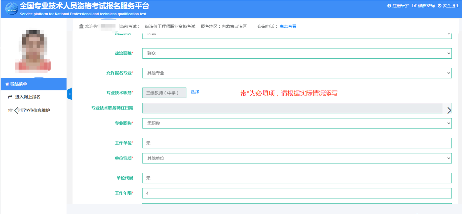 9.下面的個(gè)人信息按照實(shí)際情況填寫(xiě)即可,帶*為必填項(xiàng),不帶*的可不填。