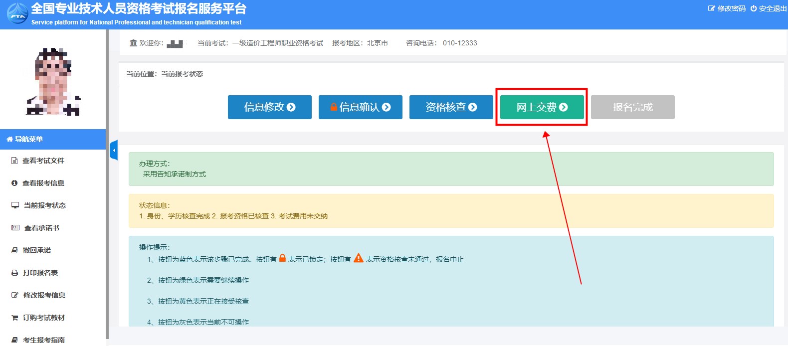 考生注意:在繳納報(bào)名費(fèi)前的報(bào)名信息是可以修改的,一經(jīng)繳費(fèi),報(bào)名信息不可修改。