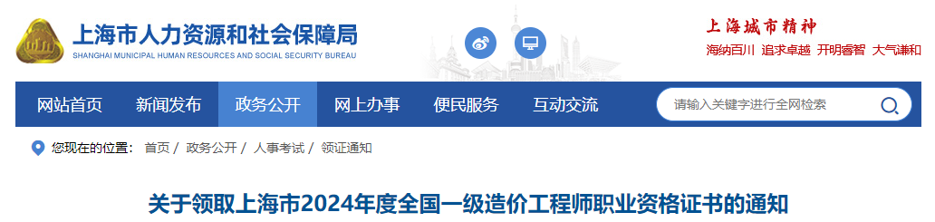 關(guān)于領(lǐng)取上海市2024年一級(jí)造價(jià)工程師職業(yè)資格證書的通知