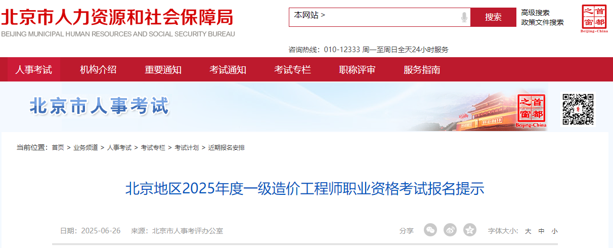 北京地區(qū)2025年度一級(jí)造價(jià)工程師職業(yè)資格考試報(bào)名提示