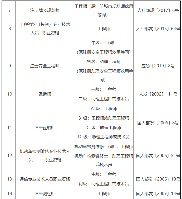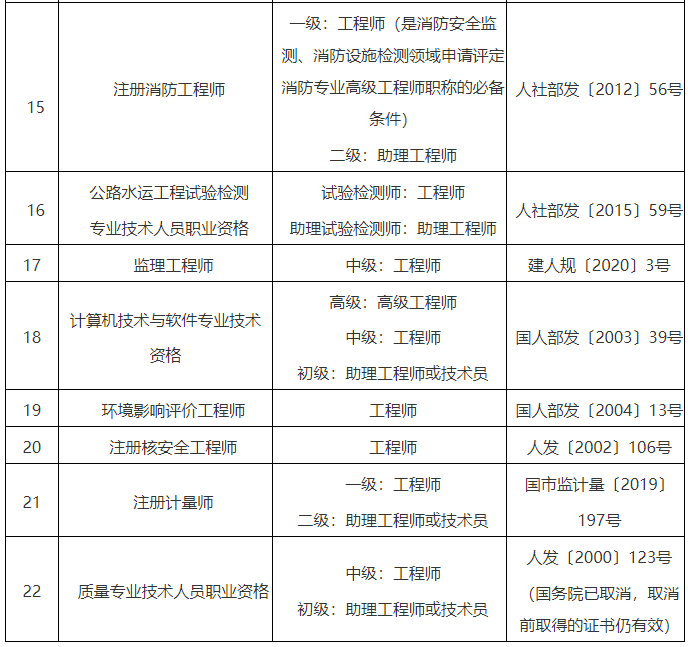 第二十六條工程技術(shù)人才取得的工程領(lǐng)域?qū)I(yè)技術(shù)類職業(yè)資格,可對(duì)應(yīng)相應(yīng)層級(jí)的職稱(見(jiàn)附件),并可作為申報(bào)高一級(jí)職稱的條件。