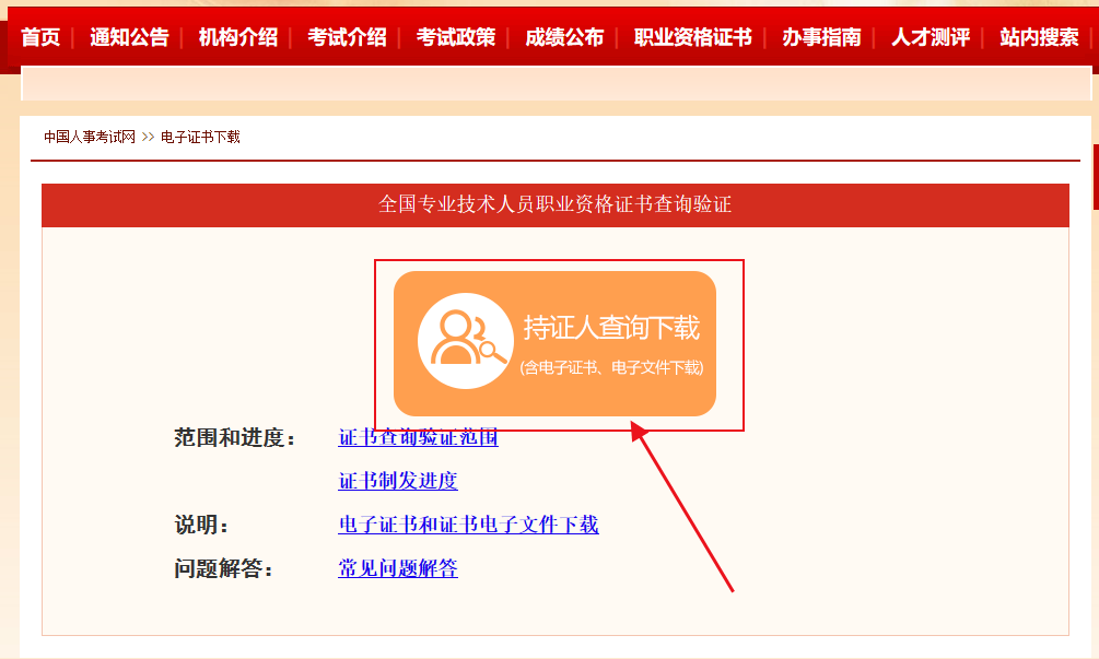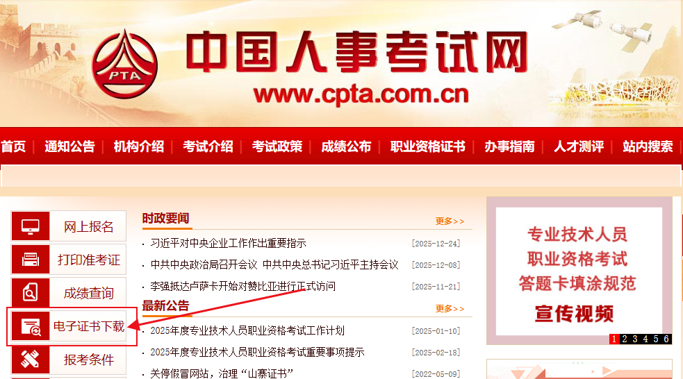 第一步:打開中國人事考試網(wǎng)-點擊“電子證書下載”