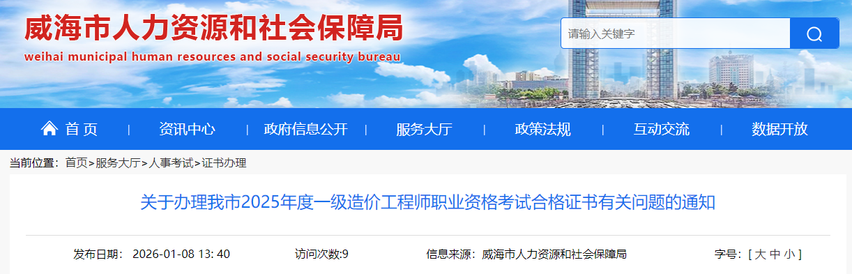 山東威海2025年度一級(jí)造價(jià)工程師職業(yè)資格考試合格證書(shū)有關(guān)問(wèn)題通知