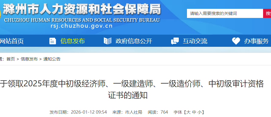 安徽省滁州市2025年一級(jí)造價(jià)師證書領(lǐng)取通知